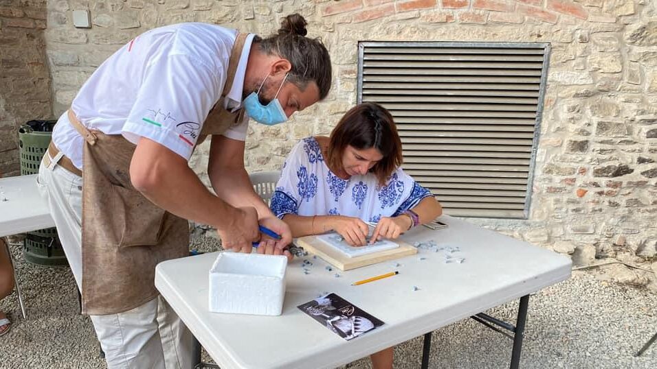“Materiali legati al nostro territorio e alla nostra tessitura geologica, verranno utilizzati durante la sezione dedicata alla creazione di un mosaico”, spiega Pietro Fabbroni Presidente della Federazione Artistico di Confartigianato, illustrando le fasi del laboratorio.