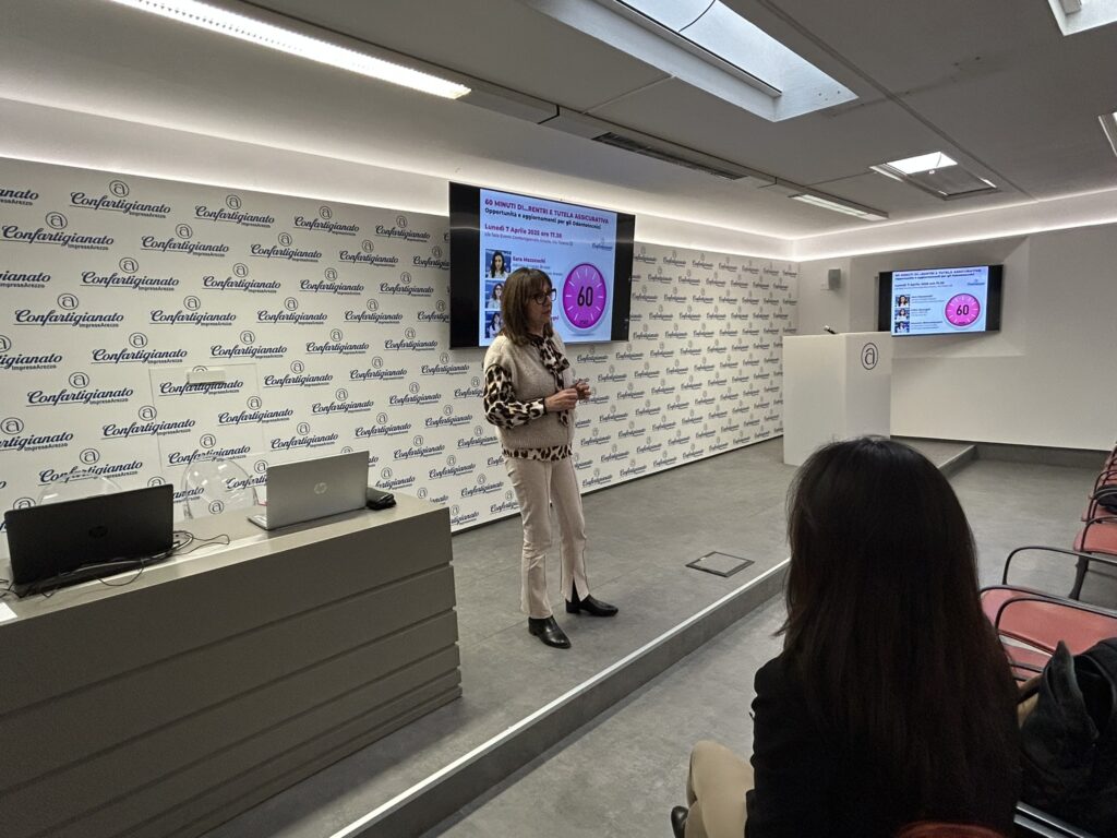 L’occasione di questo incontro ha permesso anche un momento di aggiornamento, promosso da Confartigianato, dal titolo “60 Minuti di…Rentri e Tutela Assicurativa”, curato da Erika Ravagni di PMI Service e Sara Mazzeschi di Artigian Broker.