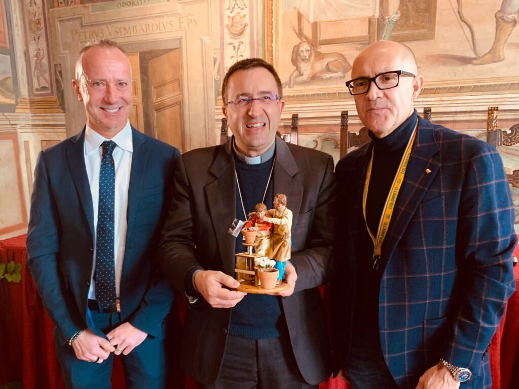 Confartigianato e Coldiretti consegnano al Vescovo la statuina del Presepe 2023: l’apprendista con il Maestro