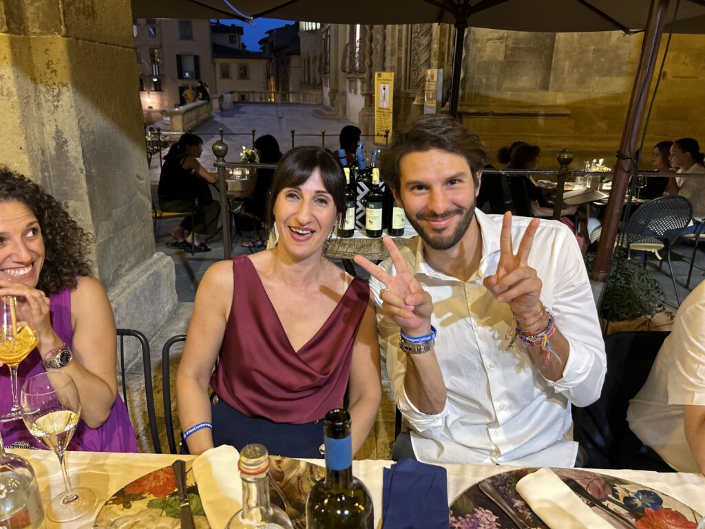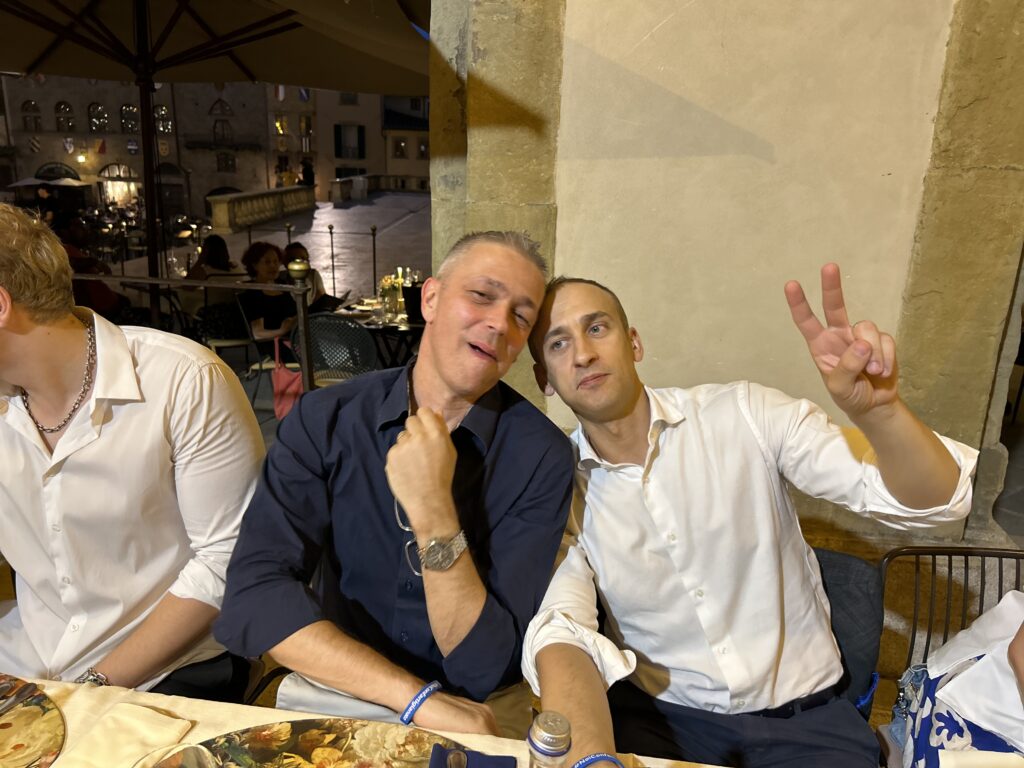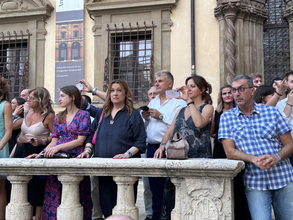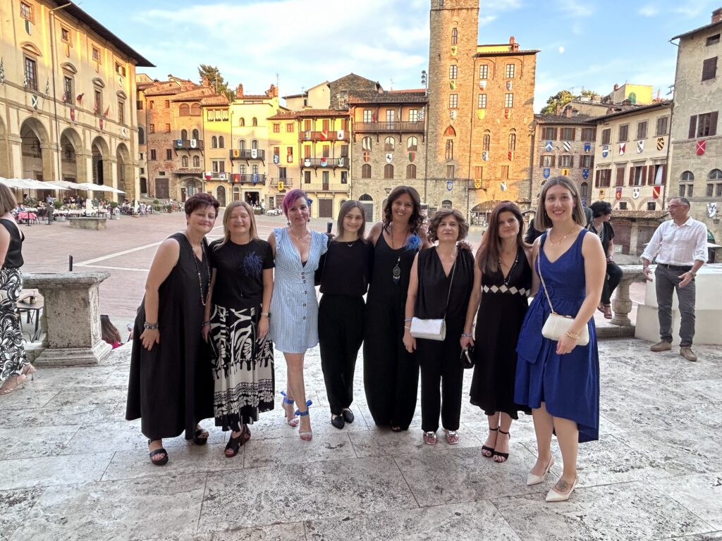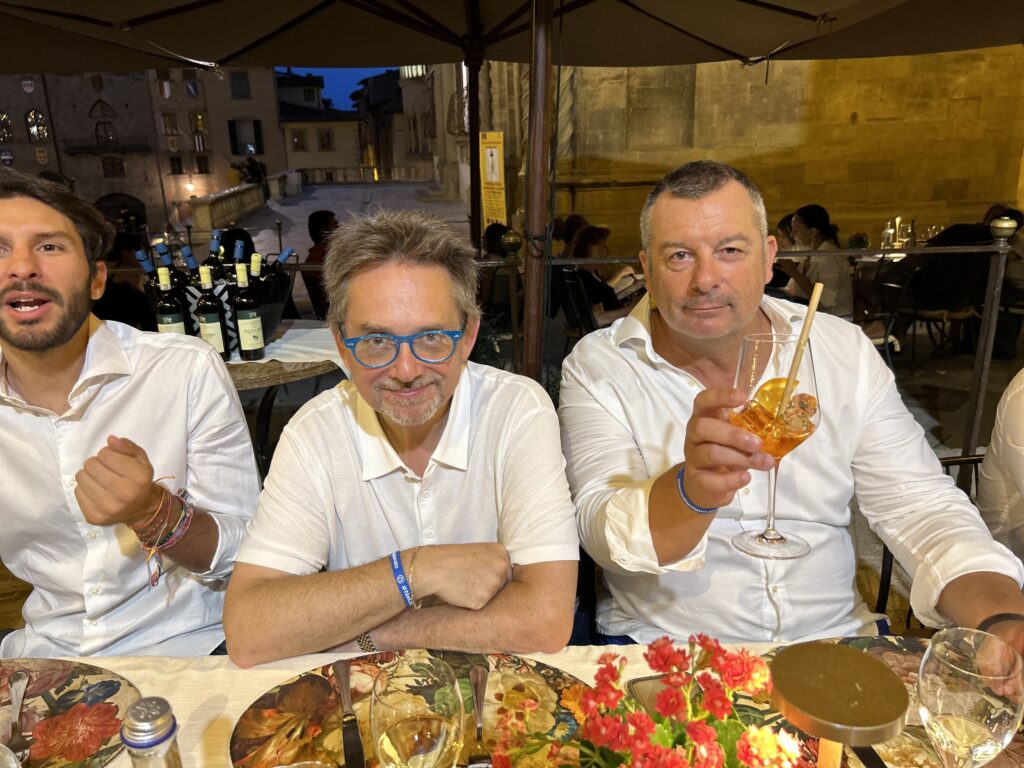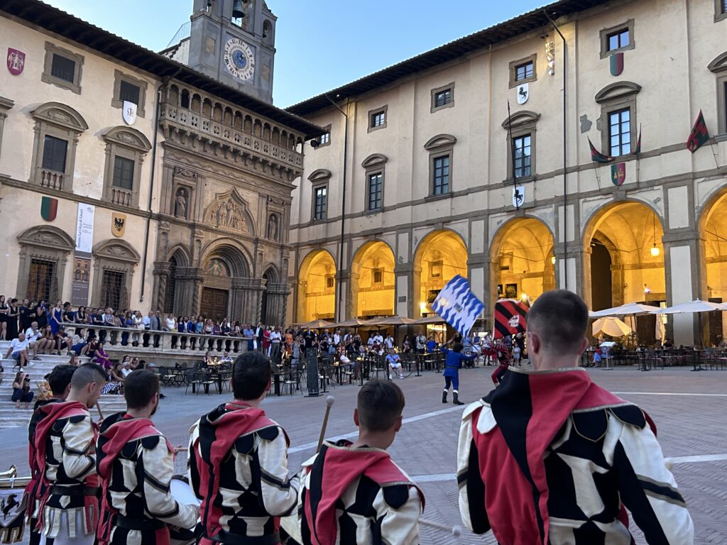 La serata è stata allietata anche dallo straordinario spettacolo degli Sbandieratori di Arezzo che hanno voluto a loro modo omaggiare i vertici di Confartigianato presenti in Piazza Grande.