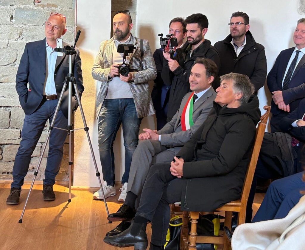 Erano presenti oltre al Presidente dell’Ente Mostra, della Provincia di Arezzo e Sindaco di Anghiari, Alessandro Polcri, il Direttore Artistico della Mostra, Paola De Blasi, il Presidente ed il Segretario della Camera di Commercio Massimo Guasconi e Marco Randellini ed il Direttore della Banca di Anghiari e Stia Fabio Pecorari.