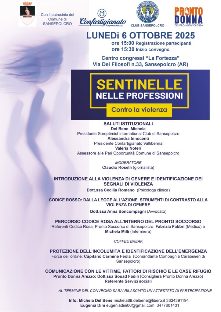 La Federazione Benessere di Confartigianato si è attivata, sulla scia dell’accordo nzionale con Soroptimist International, promuove nel territorio di Sansepolcro e di tutta la Valtiberina Toscana il percorso “Sentinelle nelle Professioni contro la violenza”, per: