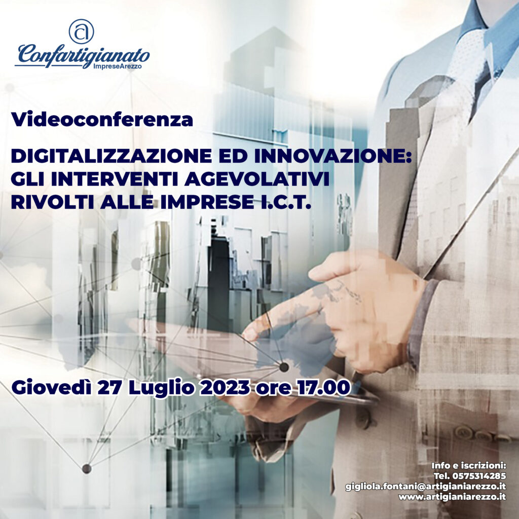 Confartigianato ha promosso un incontro online rivolto a tutti gli associati del settore ICT incentrato sugli interventi agevolativi pubblicati o di imminente uscita da Regione Toscana, Simest, ecc. e rivolti alle aziende per investimenti in digitalizzazione e innovazione e nei quali le imprese ICT sono di fatto i fornitori/ consulenti per servizi e “prodotti” digitali.