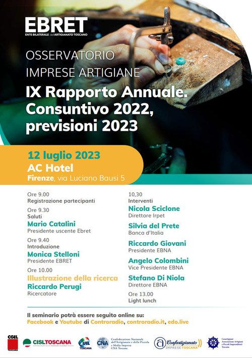 Verrà presentato a Firenze presso l’AC Hotel il “Rapporto economico annuale dell’Artigianato toscano“, giunto alla 9° edizione e realizzato dall’Osservatorio Imprese Artigiane dell’EBRET.