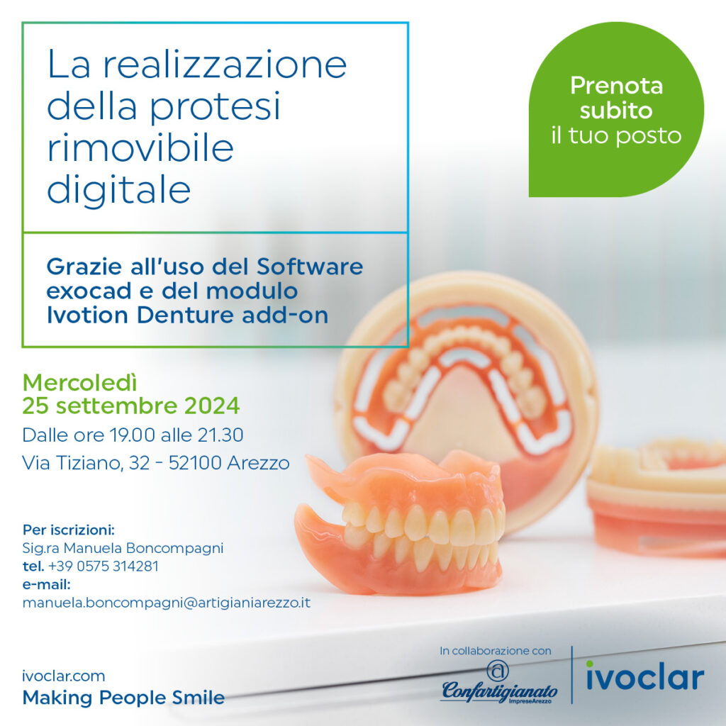 Confartigianato Odontotecnici e Ivoclar organizzano una conferenza tecnica dal titolo “La realizzazione della protesi rimovibile con l’uso del Software exocad e del modulo Ivotion Denture add-on”.