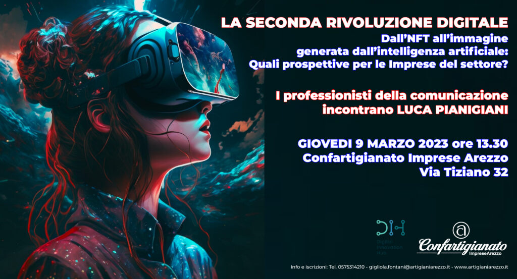 Per affrontare queste sfide, trasformando pericoli e criticità in opportunità, Confartigianato ha promosso una giornata di formazione con Luca Pianigiani (Docente universitario, giornalista e consulente in innovazione digitale di fama nazionale) dal titolo “La seconda rivoluzione digitale: dall’NFT all’immagine generata dall’intelligenza artificiale: quali prospettive per le Imprese del settore?”.