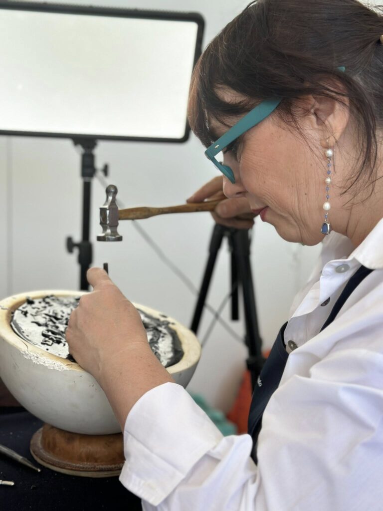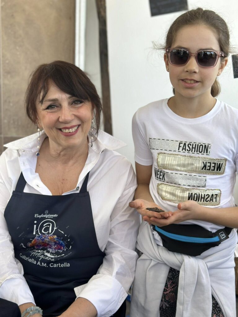 Gabriella Anna Maria Cartella darà una dimostrazione della lavorazione dei metalli. Cartesio, il suo laboratorio, a Grosseto, dove Gabriella sceglie attentamente i minerali grezzi, li affida alla taglieria secondo i suoi disegni, contatta importatori per realizzare gioielli, pezzi unici, interpretando esperienze ed emozioni perché ogni materiale, ogni pietra rivendica la propria storia. E per questo chi indossa i gioielli Cartesio sente esaltata la propria natura. Gabriella è da sempre impegnata nella crescita professionale e personale attraverso studio continuo e progetti di formazione, principalmente rivolti ai giovani che possano trasmettere ed arricchire l’artigianato, fiore all’occhiello della nostra straordinaria Italia.