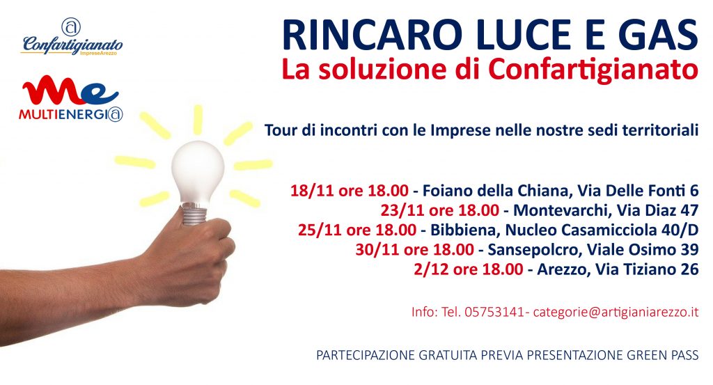 Confartigianato, alla luce dei forti rincari dei prezzi su luce e gas, promuove una serie di incontri rivolti a tutte le Imprese della provincia di Arezzo.