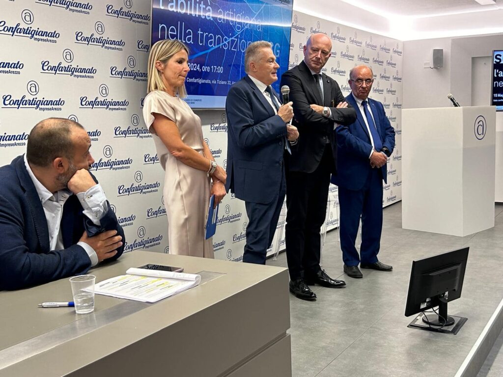 - Emanuele Nocentini, Responsabile Area Fiscale e tributaria di Confartigianato Arezzo, con una panoramica sui servizi attivi in Confartigianato, già disponibili, e sempre più attinenti e funzionali al percorso ESG delle imprese. La relazione di Nocentini è stata frutto del lavoro di squadra con il Responsabile dell’Area Credito e Finanza Agevolata di Confartigianato Arezzo, Stefano Peruzzi.