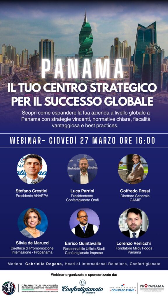 L’evento è organizzato in collaborazione con la Camera di Commercio Italiana a Panama e dedicato alle imprese del Sistema Confartigianato.