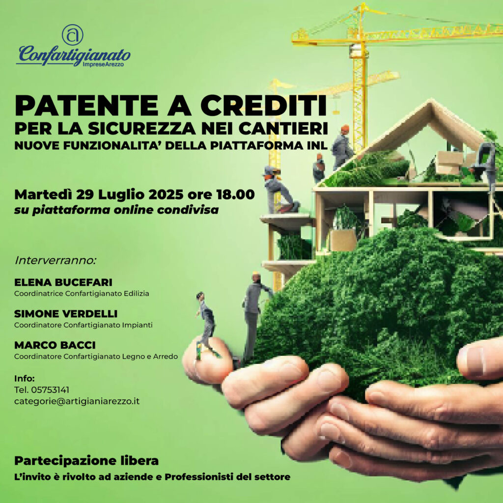 Confartigianato Arezzo organizza un nuovo incontro online dal titolo “Patente a crediti per la sicurezza nel cantieri: nuove funzionalità della piattaforma INL”.