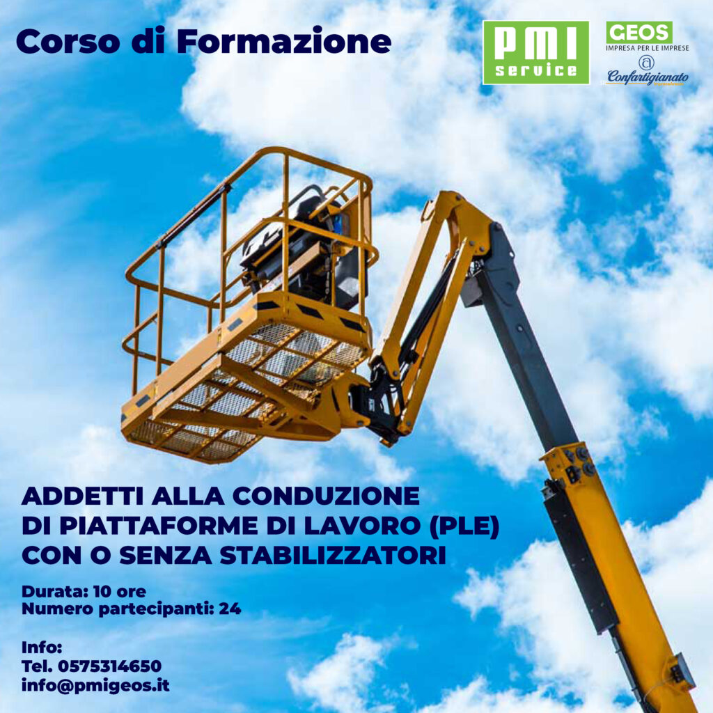 PMI Service srl, Società del sistema Confartigianato Arezzo organizza Corsi di formazione per addetti alla conduzione di piattaforme di lavoro (PLE) con o senza stabilizzatori.
