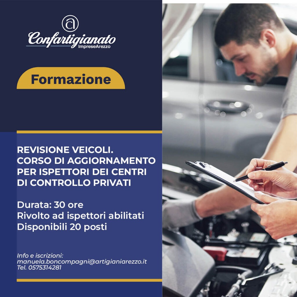 Confartigianato Arezzo Formazione, in virtù del “riconoscimento” concesso dalla Regione Toscana, organizza un corso di aggiornamento professionale per ispettori dei centri di controllo privati autorizzati all’effettuazione della revisione dei veicoli a motore e dei loro rimorchi.