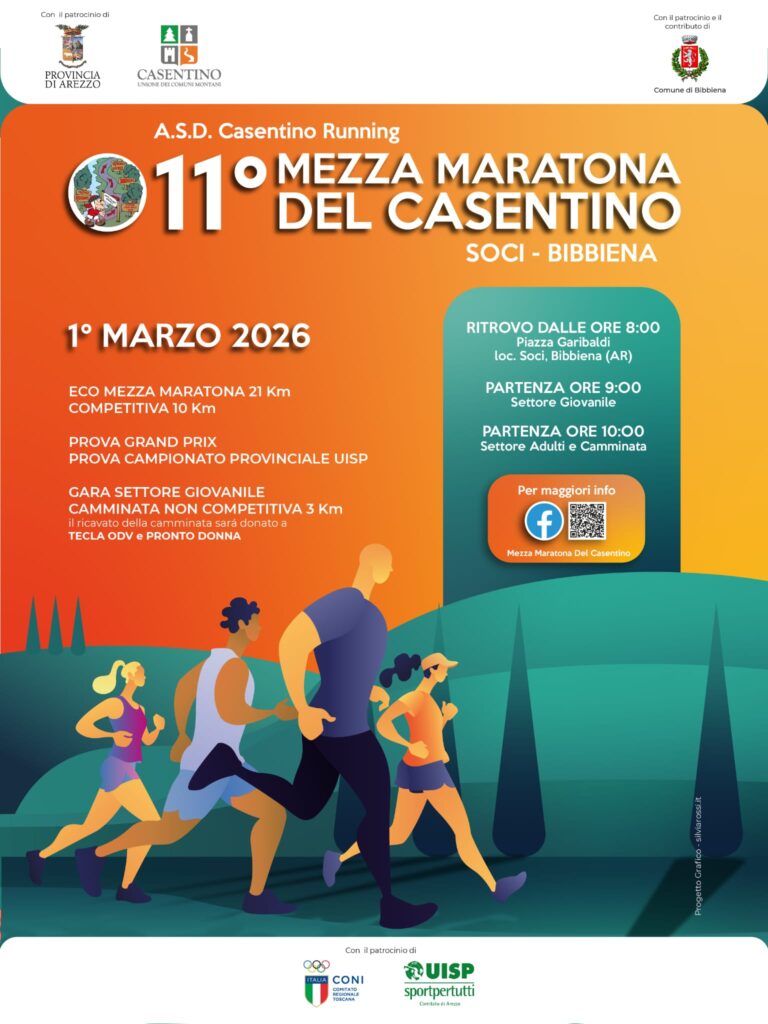 Confartigianato Sport sostiene e partecipa all’11ª edizione della Mezza Maratona del Casentino, in programma domenica 1° marzo 2026 a Soci, nel Comune di Bibbiena.