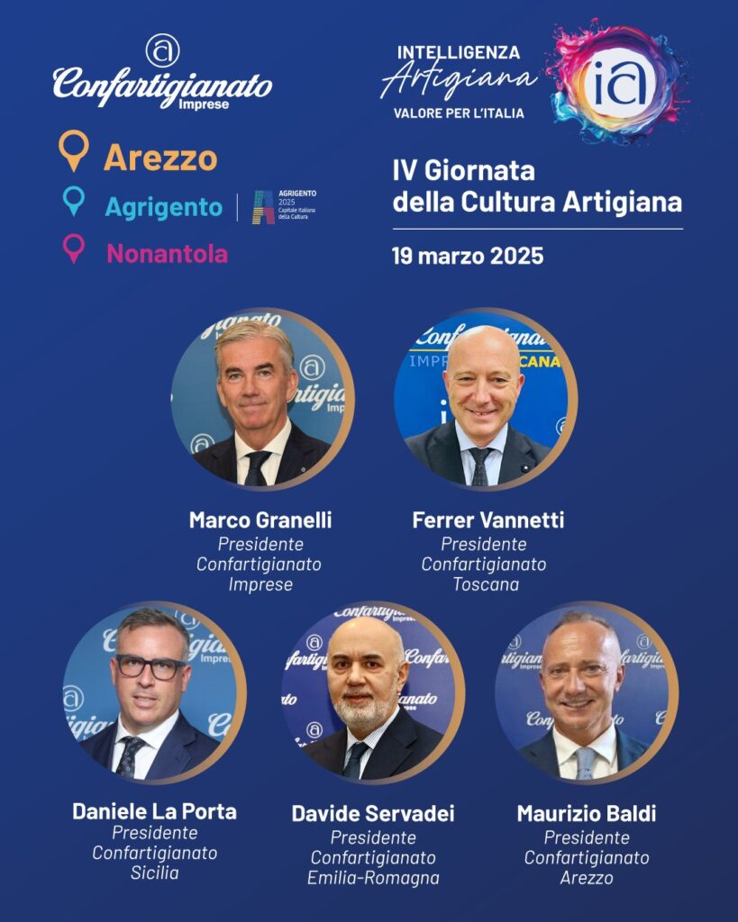 “La giornata sarà poi intervallata da collegamenti con tutta Italia, tra questi quello prestigioso con Agrigento – spiega Alessandra Papini, Segretario di Confartigianato Imprese Arezzo – L’evento che ospiteremo avrà un respiro nazionale anche grazie alla diretta streaming che ci permetterà di aprire una finestra su Agrigento, Città della cultura 2025, con un tuffo in Magna Grecia”. Le telecamere faranno poi tappa anche a Nonantola, in provincia di Modena, in cui si svolgerà un pomeriggio ricco di appuntamenti nella ricorrenza del Patrono degli artigiani.