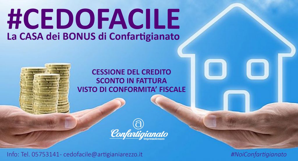 #Cedofacile è il nuovo sportello di Confartigianato Imprese Arezzo, dedicato a privati ed aziende che chiedono consulenza e servizi mirati alla cessione del credito o allo sconto in fattura dei Bonus Casa.