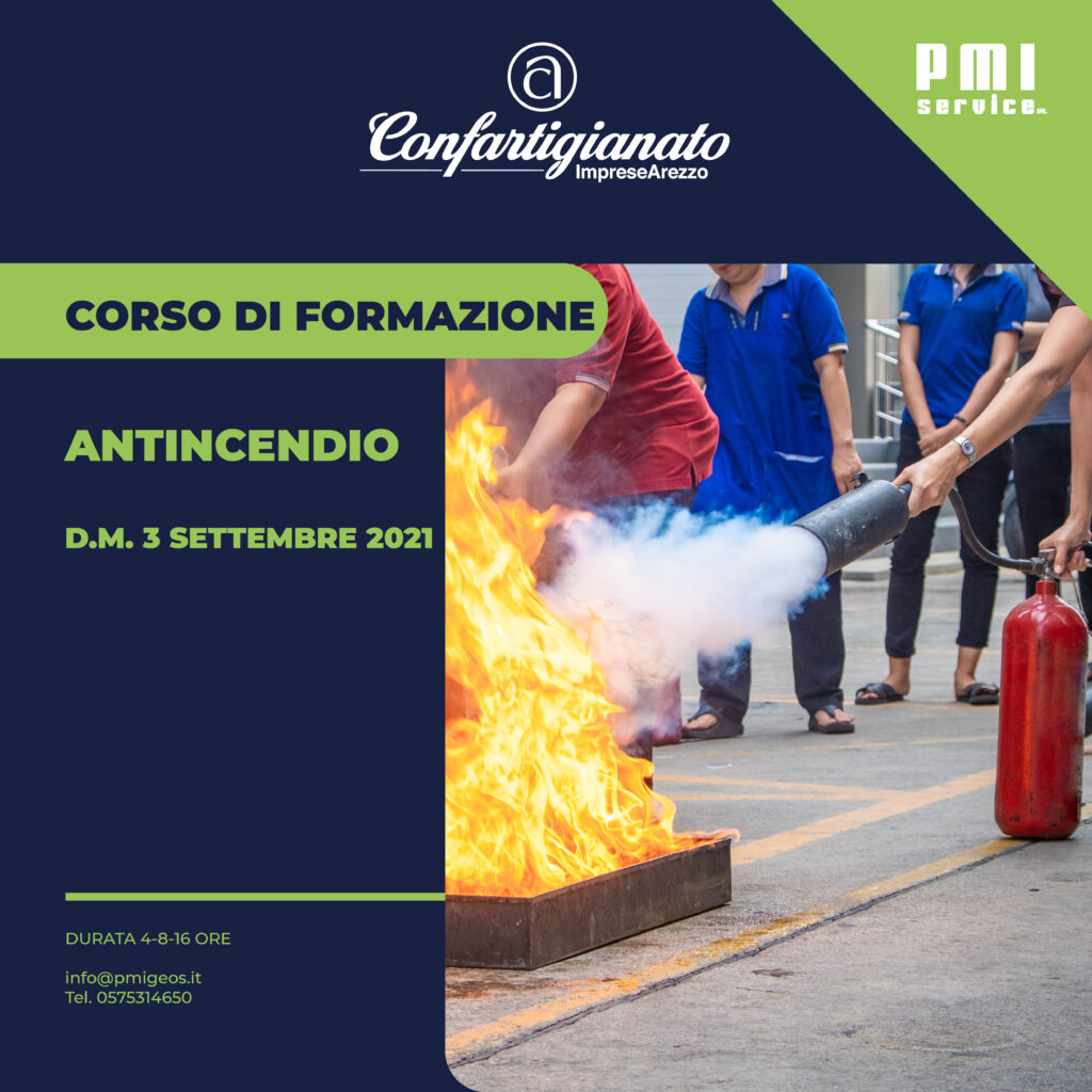 PMI Service srl, società del Sistema Confartigianato imprese Arezzo, organizza Corsi di formazione antincendio in base a quanto previsto D.M 3.09.2021.