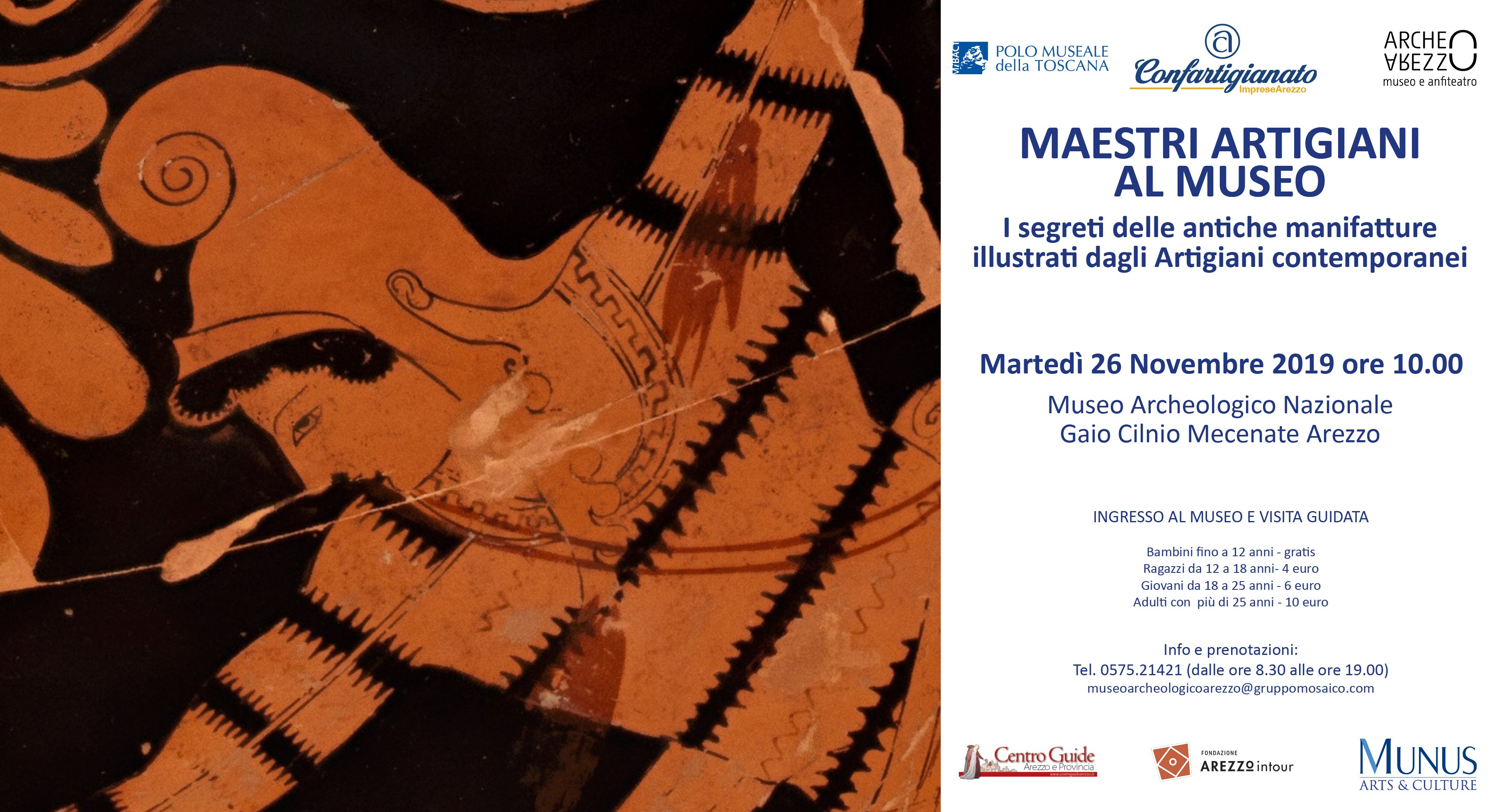 L’evento sarà dedicato al vasto pubblico dei turisti stranieri ed Italiani, ma anche ai residenti del territorio di Arezzo che intendono approfittare della straordinaria presenza dei maestri artigiani per guardare con occhi nuovi agli antichi reperti custoditi nelle teche del Museo Archeologico.