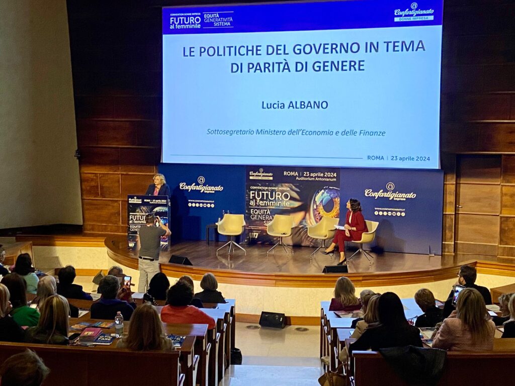 E’ il messaggio portato dalla Ministra per le pari opportunità e la famiglia Eugenia Roccella e dal Sottosegretario al Ministero dell’economia e finanze Lucia Albano alla Convention di Donne Impresa Confartigianato dal titolo “Futuro al femminile. Equità, generatività, sistema”, svoltasi Martedì 23 Aprile a Roma.