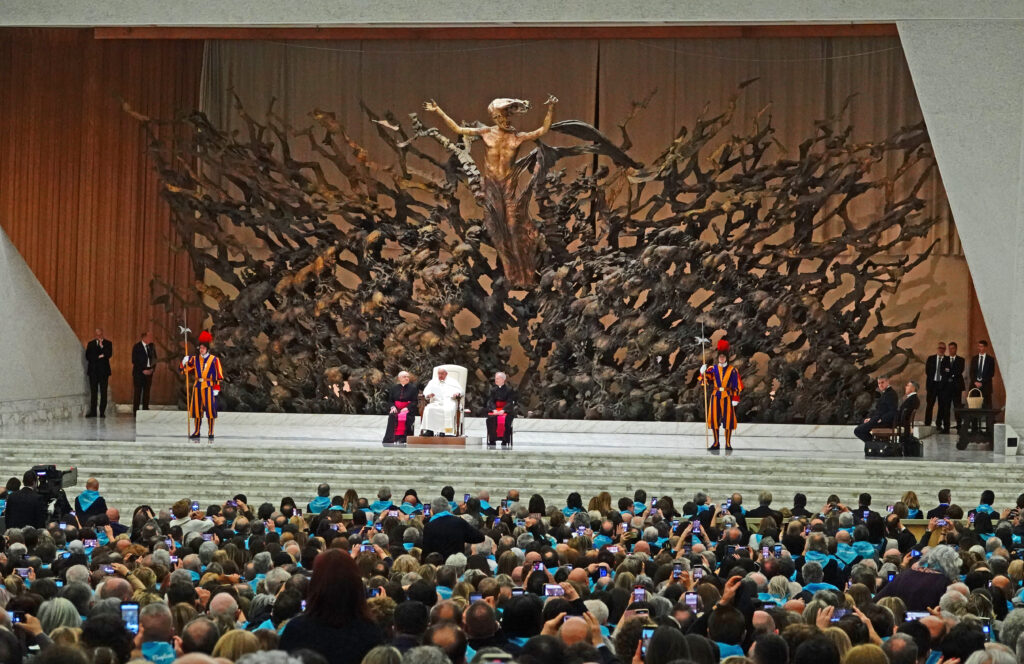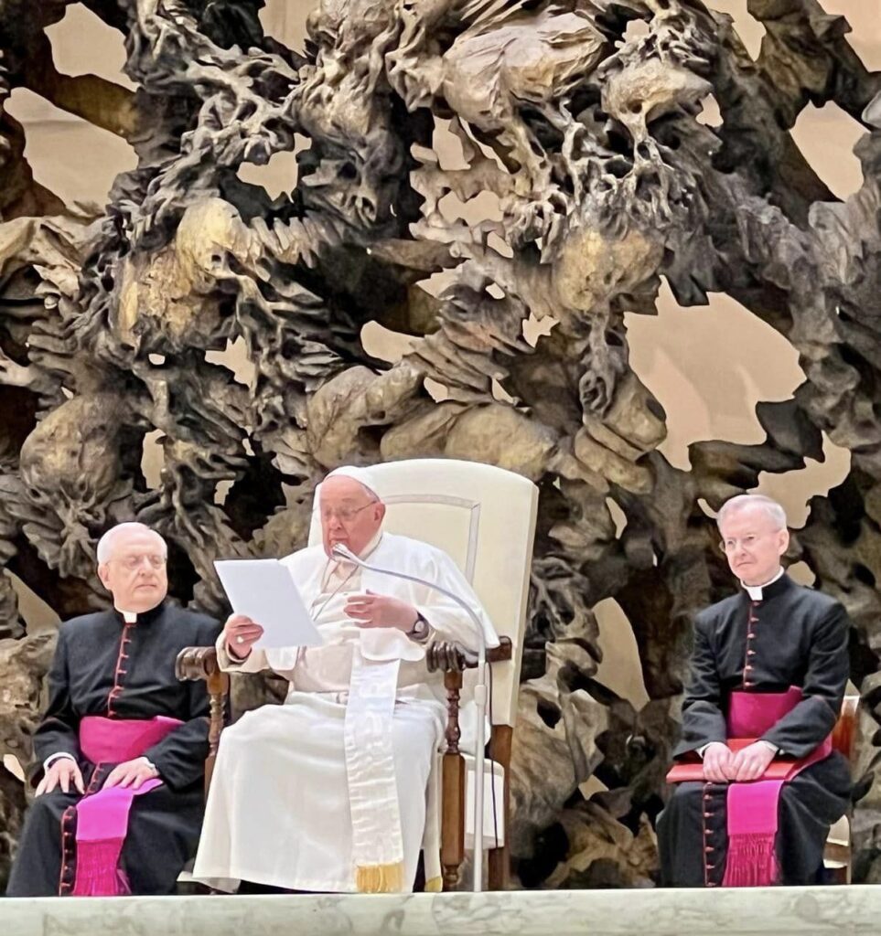 Vi incoraggio ad essere artigiani di pace in un tempo in cui le guerre mietono vittime e i poveri non trovano ascolto. Le vostre mani, i vostri occhi, i vostri piedi siano segno di un’umanità creativa e generosa. E il vostro cuore sia sempre appassionato della bellezza. Grazie per il bene che realizzate. Vi affido alla protezione di San Giuseppe, che custodisca voi, le vostre famiglie e il vostro lavoro. Vi benedico di cuore. E vi chiedo per favore di pregare per me. Grazie!