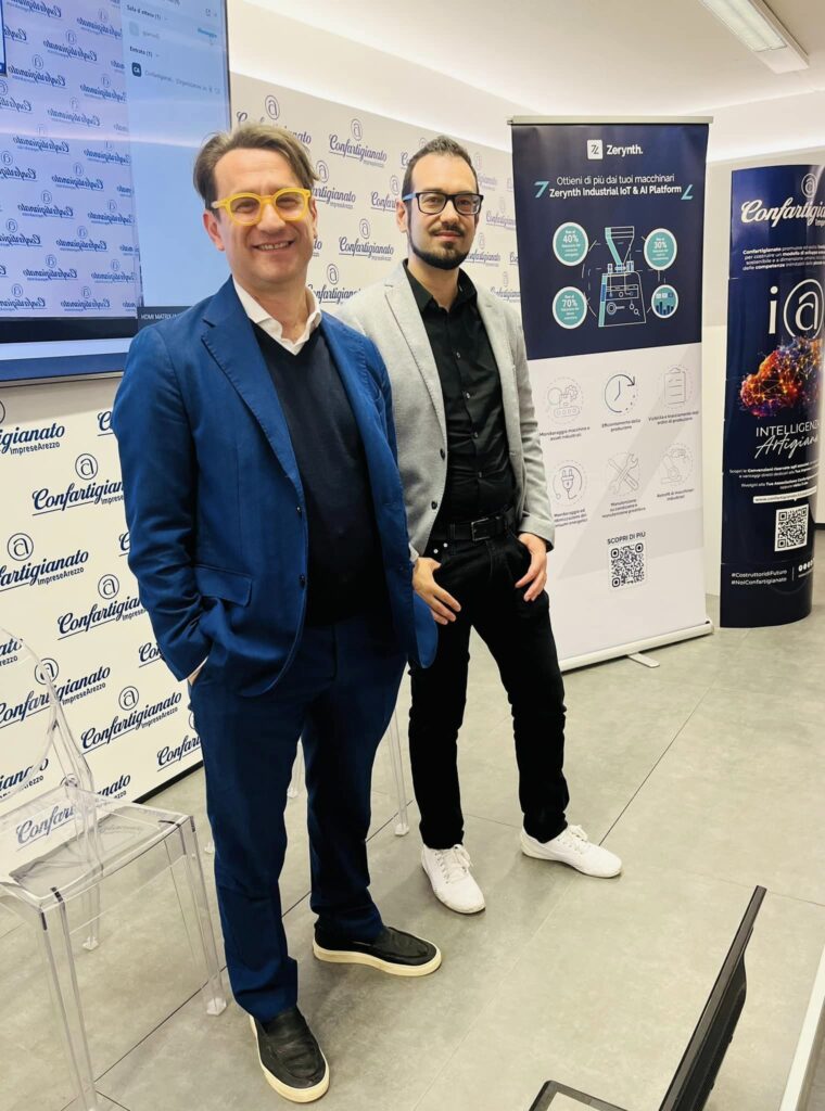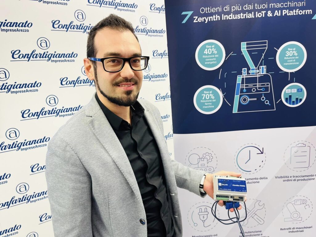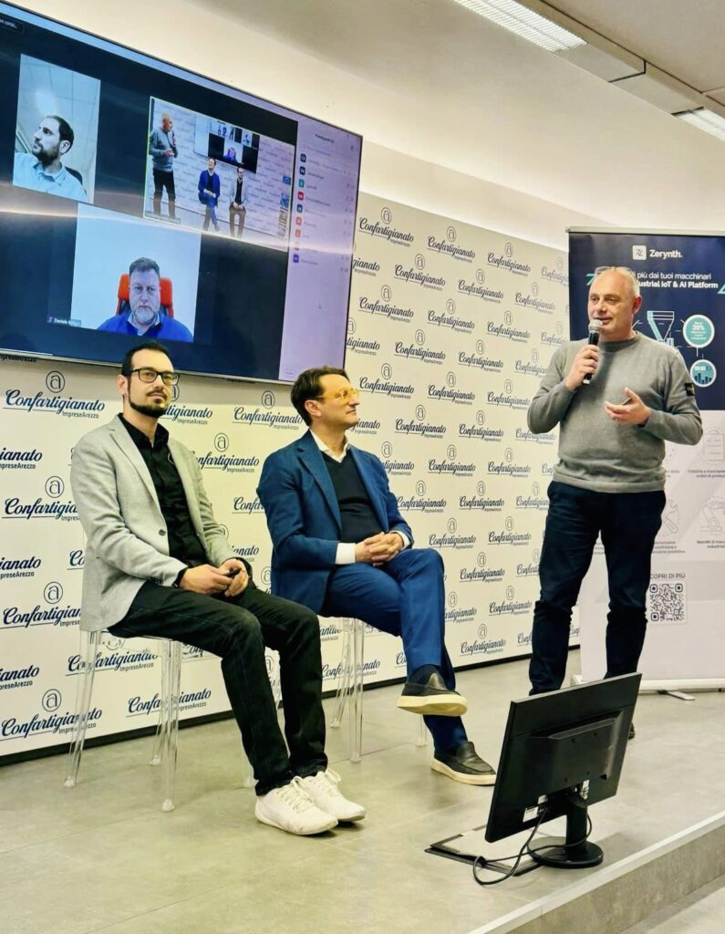 Con il supporto del nostro bravissimo Tecnology Broker Alessandro Meucci, il Dr. Matteo Cipriani (Technical Sales Strategist Zerynth spa) ha illustrato alle imprese collegate con grande competenza e attraverso casi specifici, come trarre vantaggio dall’implementazione della tecnologia IoT e dell’intelligenza artificiale (IA) nelle operazioni per efficientare i processi produttivi, ridurre i consumi energetici, gestire la manutenzione e ottenere insights in tempo reale per ottimizzare i processi e prevedere malfunzionamenti (vedi QUI la demo di “Zero”)