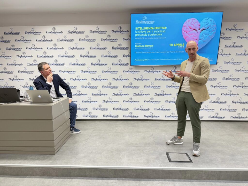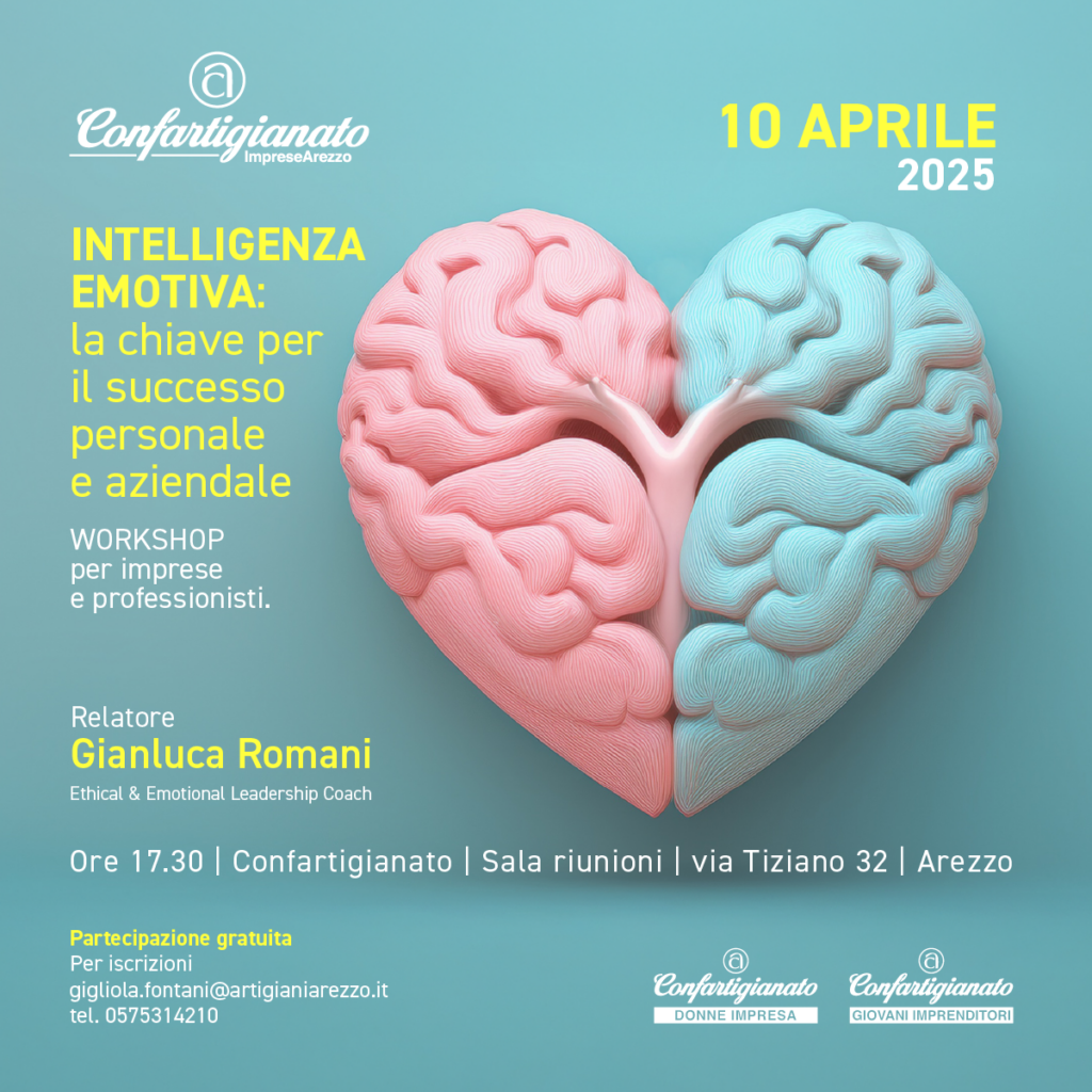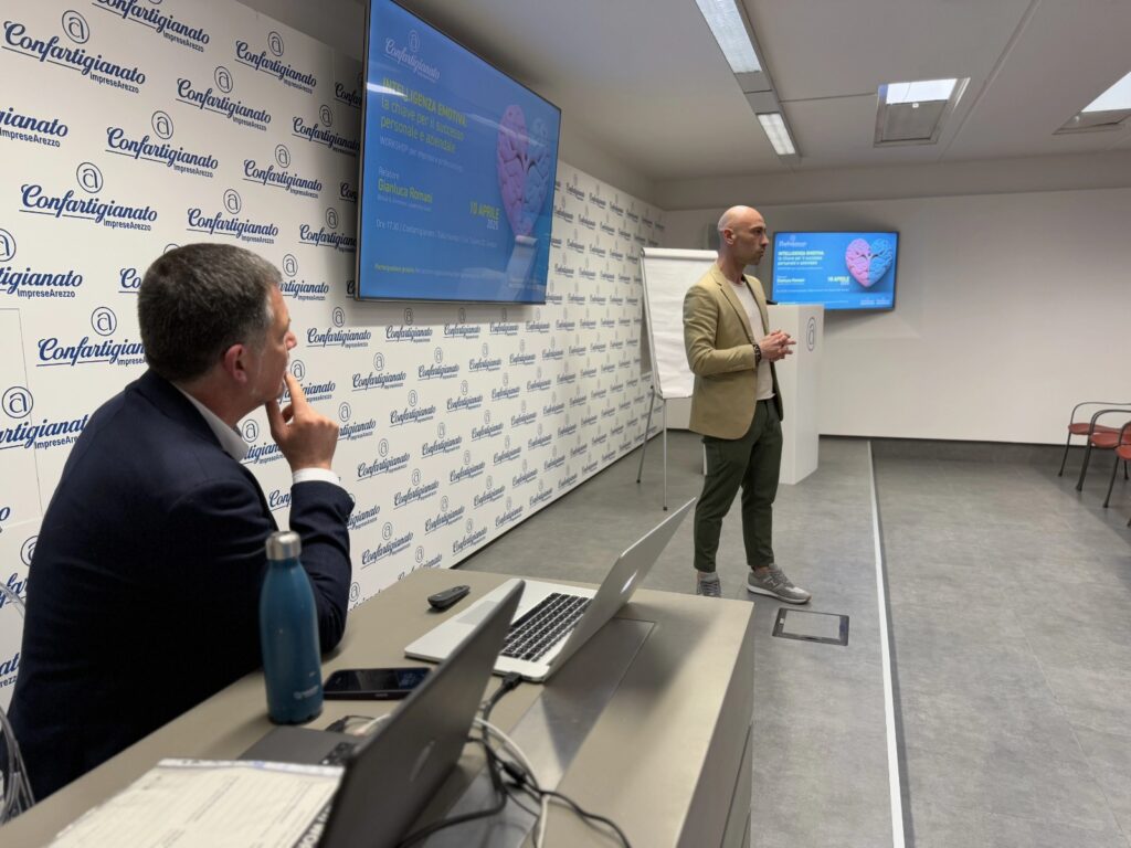 Il workshop ha avuto come pubblico imprenditori e professionisti interessati a migliorare le proprie relazioni interpersonali e contribuire a creare un ambiente di lavoro positivo, sfruttando appieno le potenzialità dell’intelligenza emotiva. L’evento si è tenuto Giovedì 10 Aprile 2025 presso Confartigianato Imprese Arezzo, in Via Tiziano 32, dalle 17.30 alle 19.30. Il workshop ha fornito un’introduzione al tema dell’Intelligenza Emotiva e alle sue applicazioni personali e aziendali, con l’idea di dare l’impulso per approfondire l’importanza delle soft skills nei team aziendali.