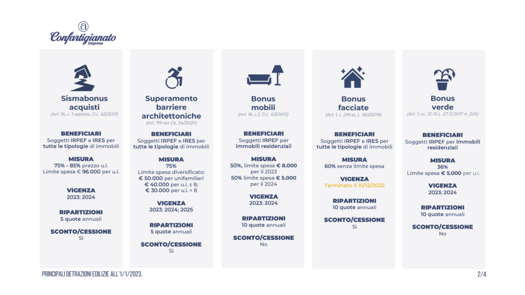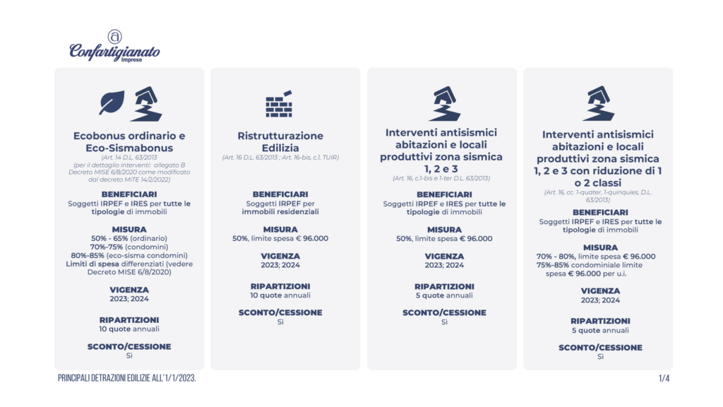 Per aiutare imprese e cittadini a comprendere meglio il quadro delle agevolazioni attualmente a disposizione, Confartigianato Edilizia ha realizzato quattro infografiche semplici e di immediata lettura.