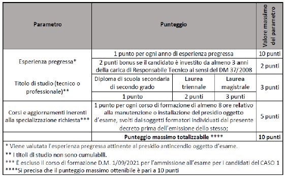 Come si può evincere dalla Tabella, viene ora valorizzata sia l’esperienza pregressa della persona da esaminare (minimo di tre anni e massimo di dieci), ma anche – e questa è la novità più rilevante, ottenuta da Confartigianato Impianti – l’eventuale possesso, da parte delle persone che intendano sostenere l’esame, dei requisiti previsti per la figura di Responsabile Tecnico secondo il decreto ministeriale 37/2008, purché con “lettera” attinente al presidio.