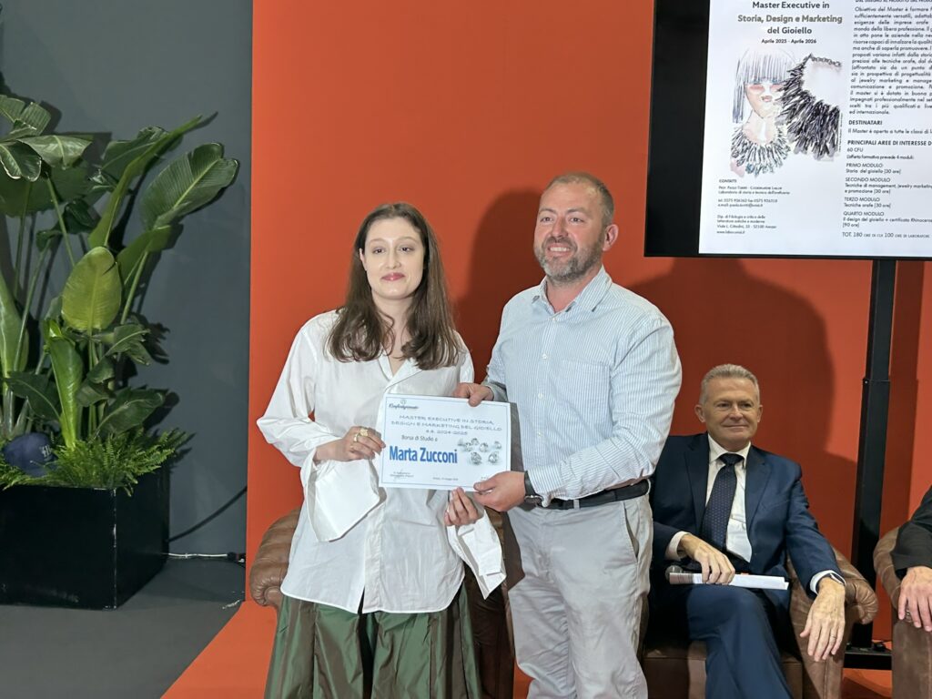 Consegnate nella giornata finale di OROAREZZO le borse di studio agli studenti del Master universitario in Storia, Design e Marketing del gioiello, organizzato nel campus universitario di Arezzo dal Dipartimento di Filologia e Critica delle Letterature antiche e moderne dell’Università di Siena.