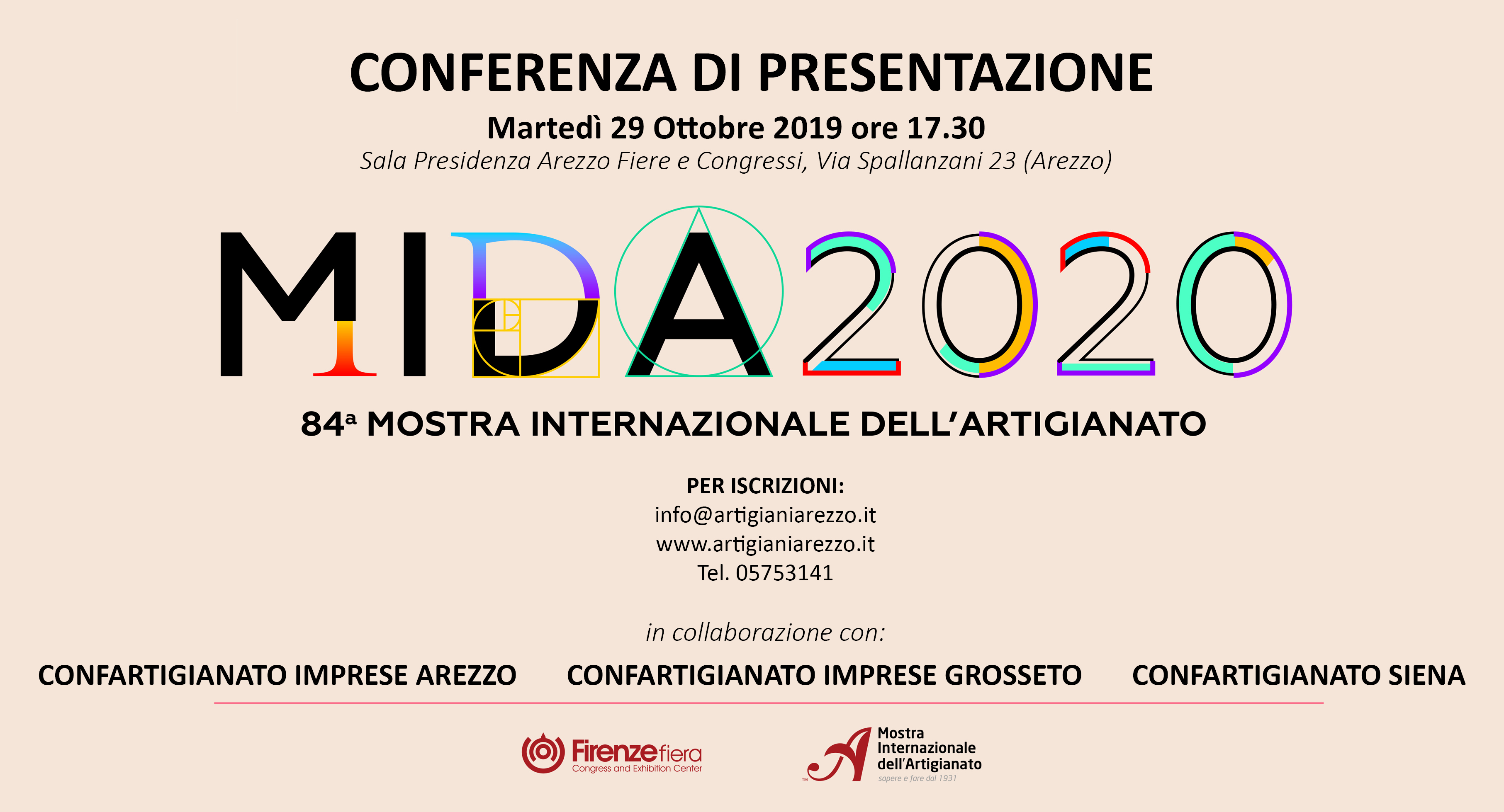 Martedì 29 Ottobre alle ore 17.30 si terrà presso la sede di Arezzo Fiere e Congressi in via Lazzaro Spallanzani 23 ad Arezzo la presentazione di MIDA 2020, l’84° Mostra Internazionale dell’Artigianato in programma a Firenze.
