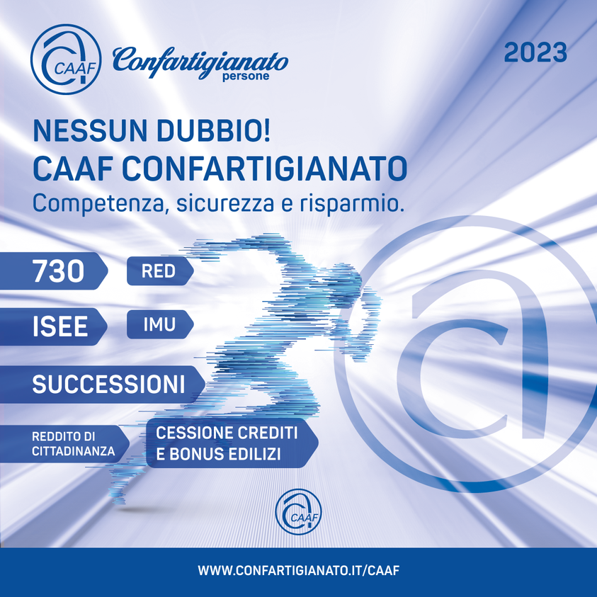 Non solo; come ogni anno il CAAF di Confartigianato è a disposizione per aiutarvi su ISEE, Successioni, IMU, Cessione crediti e visto di conformità per Superbonus e altre detrazioni, Modello RED e Modello InvCiv