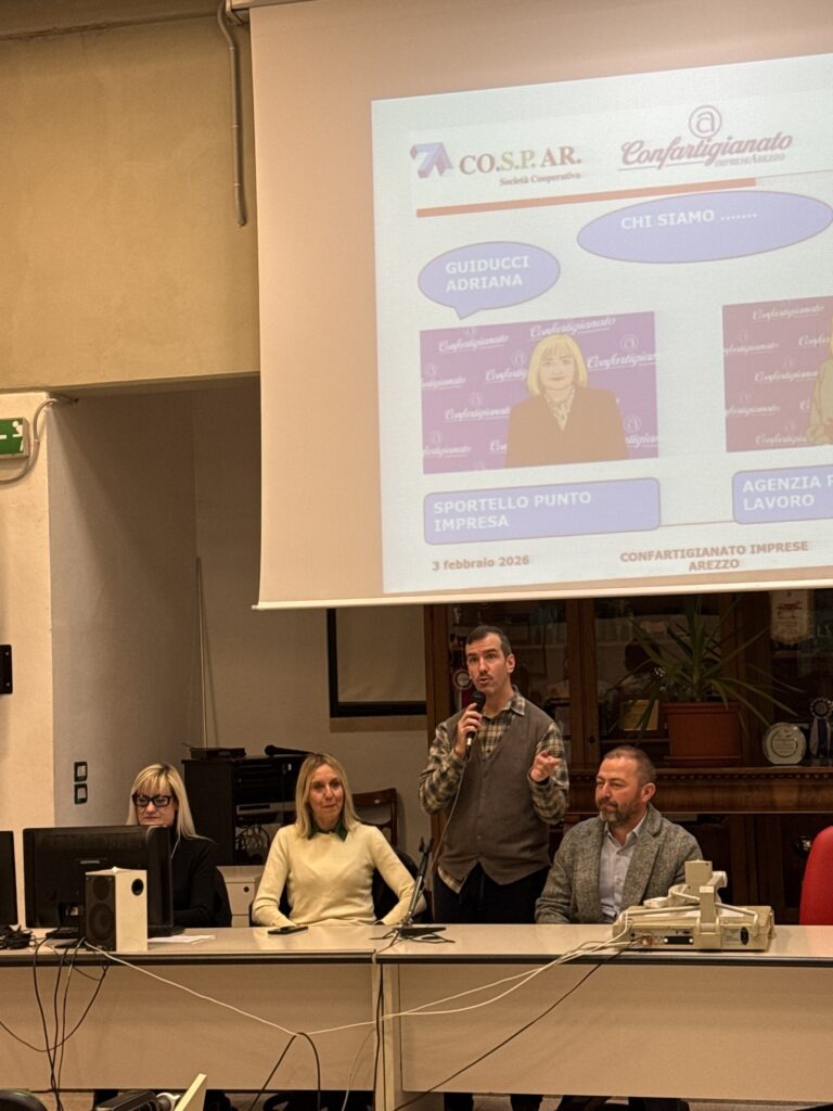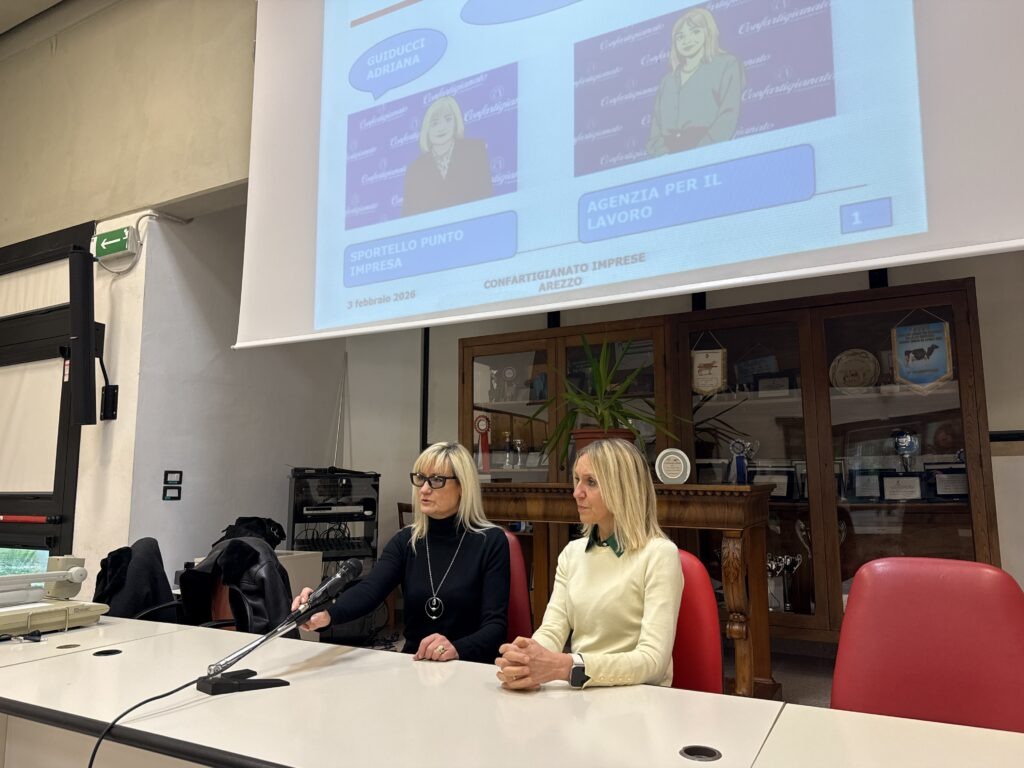 Prosegue la collaborazione tra Confartigianato e Isis Vegni di Cortona. Lo storico Istituto “Le Capezzine” ha accolto nella sua Aula Magna due giornate di orientamento al lavoro curate dai funzionari e dai dirigenti di Confartigianato. In particolare nelle giornate di martedì 3 febbraio e lunedì 9 febbraio, Gigliola Fontani della nostra Agenzia per il Lavoro e Adriana Guiducci del nostro Sportello Punto Impresa, insieme a Luca Parrini (presidente di Zona Valdichiana) e Stefano Ziantoni (presidente della Federazione Alimentazione) hanno presentato i servizi del mondo associativo agli studenti e alle studentesse, ponendo loro alcuni spunti per entrare nel mondo del lavoro.