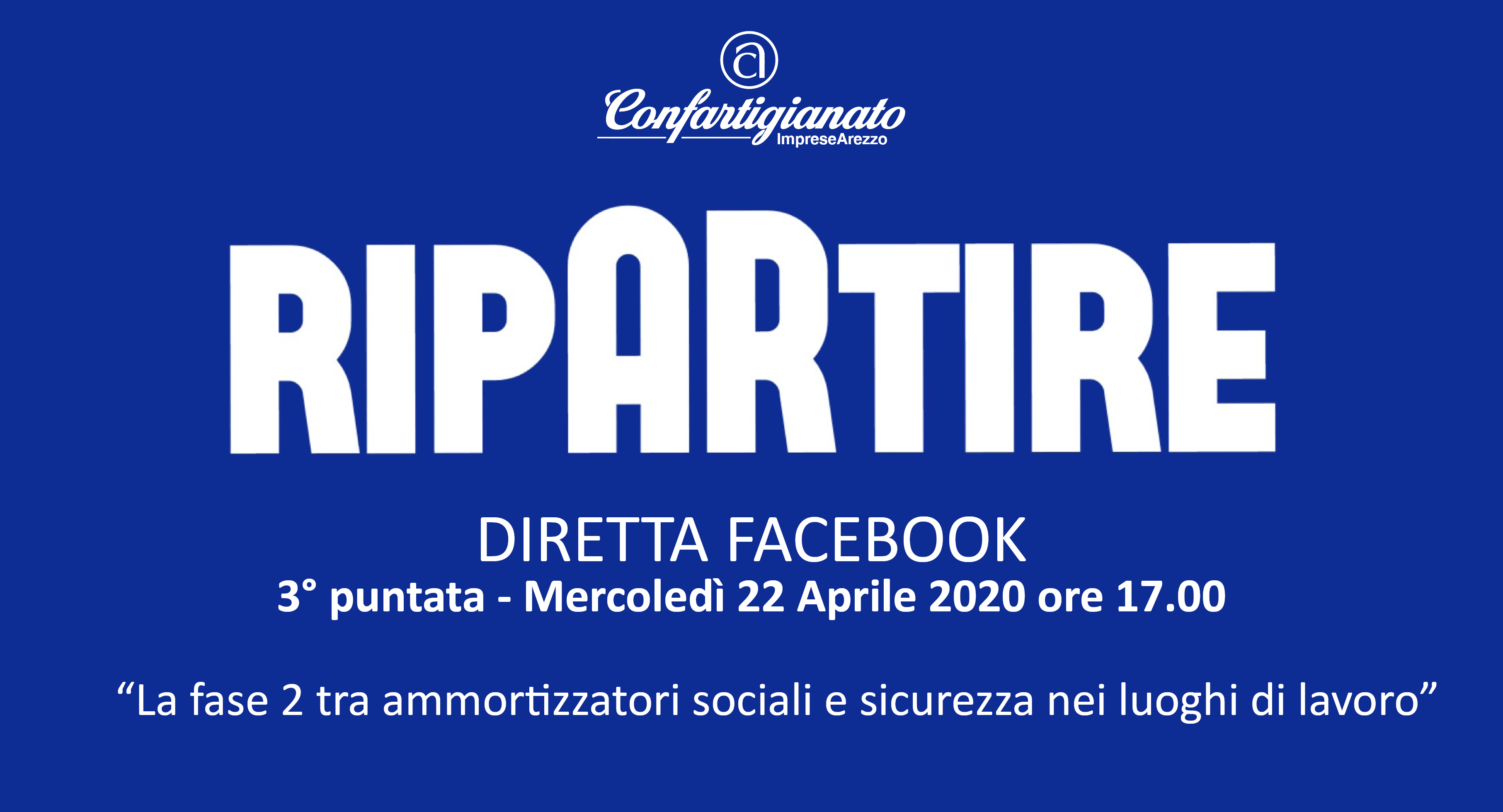 Mercoledì 22 Aprile 2020 alle ore 17.00 si terrà la 3° puntata del nuovo format RIPARTIRE (con AR che sta per Arezzo) dal titolo “La fase 2 tra ammortizzatori sociali e sicurezza nei luoghi di lavoro”.