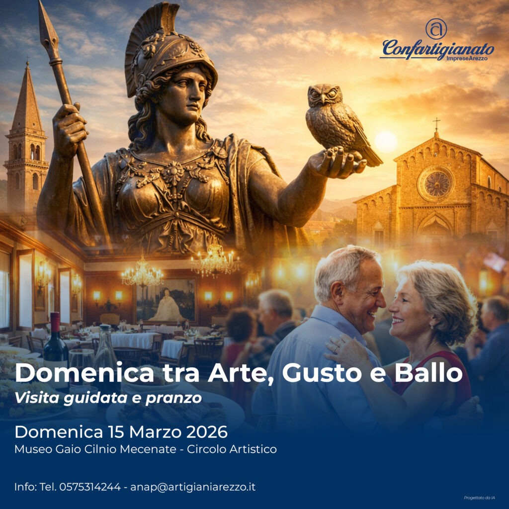 Domenica 15 marzo, ANAP, Confartigianato Persone e ANCOS ti invitano a una giornata speciale all’insegna della cultura e dello stare insieme. Il programma prevede una suggestiva visita guidata alla scoperta della Minerva, seguita da un pranzo conviviale e un divertente pomeriggio danzante presso il prestigioso Circolo Artistico.